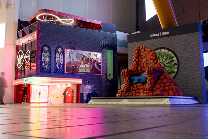 A 1 for 1 replica of Dr Doom’s in game throne landed outside The O2 entrance, and we transformed the Virgin Media Gamepad into Castle Doom with sigils, stained glass windows and the imposing Doom himself.